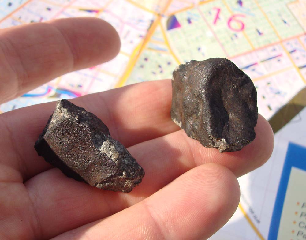Cali #006Barrio Antonio Narino ~7 grams. This stone was found in the street 7 days after the fall by members of a local astronomy club. Cali #005 was found only 3 meters from that one. This