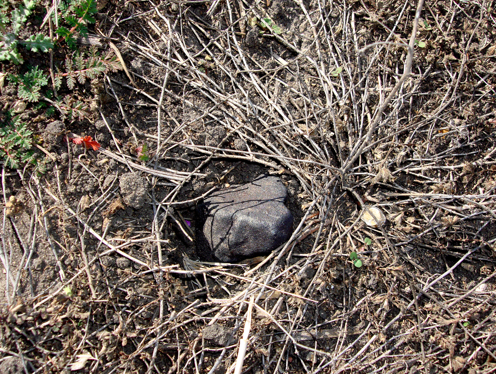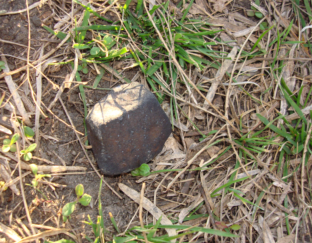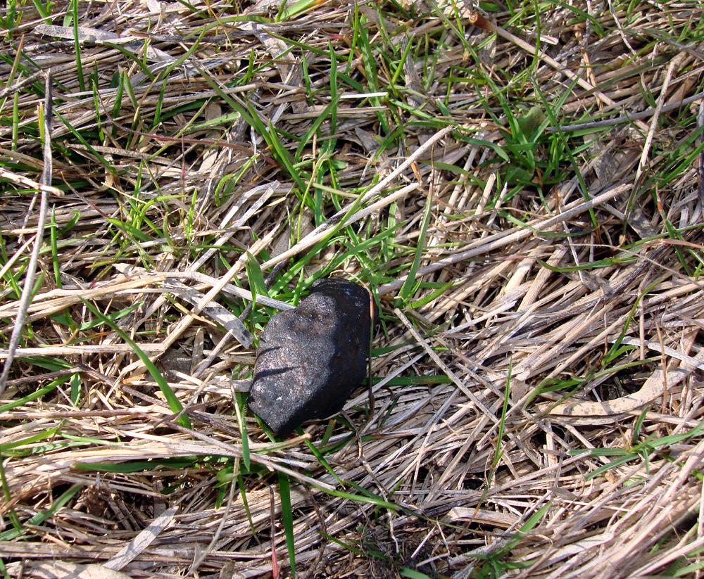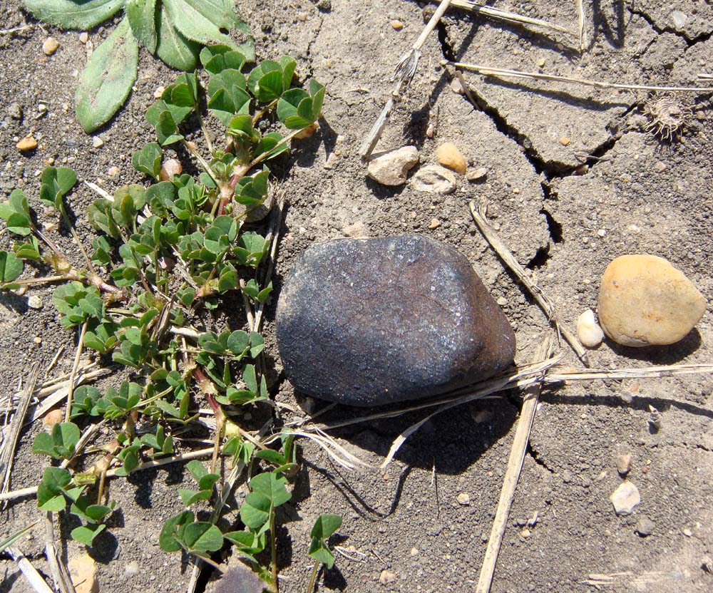 This is my largest Ash Creek meteorite find, a 68.83 gram stone still embedded in the soil where it landed. I found this stone minutes after arriving back to the strewnfield after visiting the TCU collection on 24 February 2009.