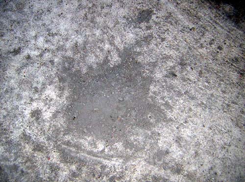 This is the point of impact. The Moss meteorite is quite fragile, and when it smashed into the cement, the meteorite smashed and this pile of dust and small fragments is the exact spot it touched down on our planet. Of course we collected all of this material with some work.