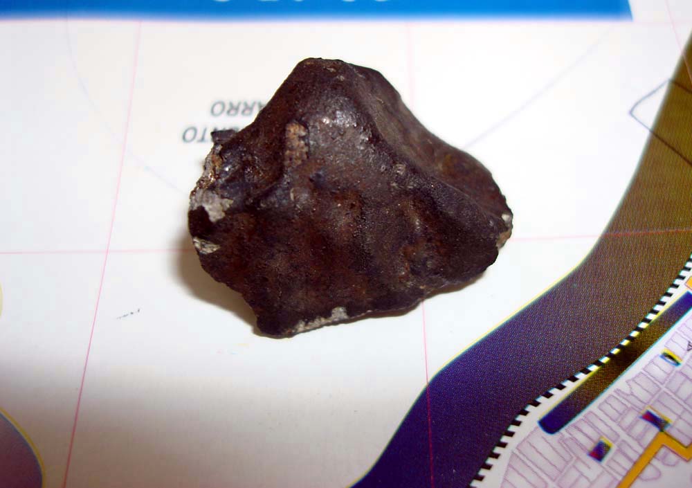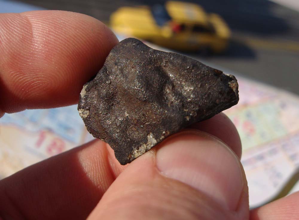 The Cali #005 meteorite. It is a nearly complete stone weighing ~12 grams. It was found in the street gutter, and it not weathered at all.