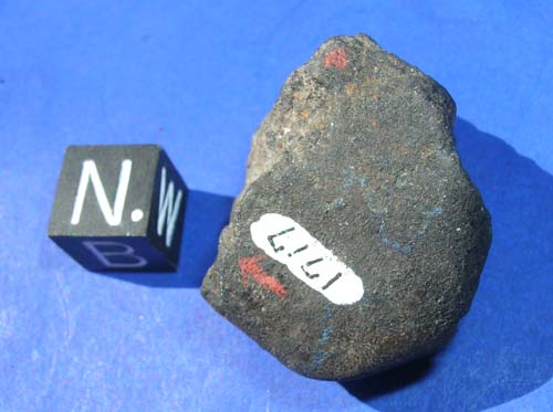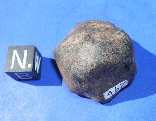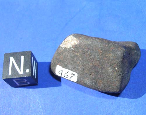 MocsThe Mocs meteorite fell on February 3rd, 1882 at 16:00 hours in the afternoon in Cluj, Transylvania. Around 300 kilograms of stones fell in this shower, the largest of 56 kilos! The Mocs meteorite is a chondrite (L6) veined. Although many stones fell, Mocs is exceedingly difficult to acquire, as almost every stone is in Museum and University collections around the world. I recently completed a large exchange of meteorite with the US National Museum (Smithsonian) and all of these pieces are either from #1717 or #467. There were two batches of stones under those numbers, and I got some of each. Each piece is numbered on the stone, and includes a copy of the exchange agreement, which proves provenance. There was no label with these stones.