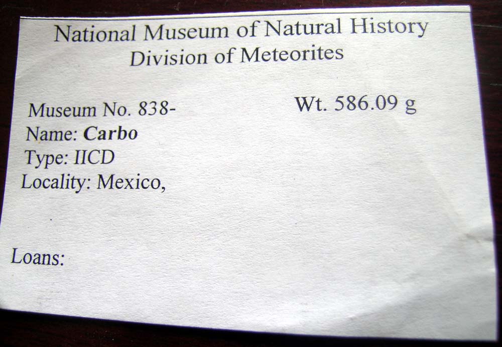 in Sonora, Mexico in 1923. A mass of ~1000 pounds was found on