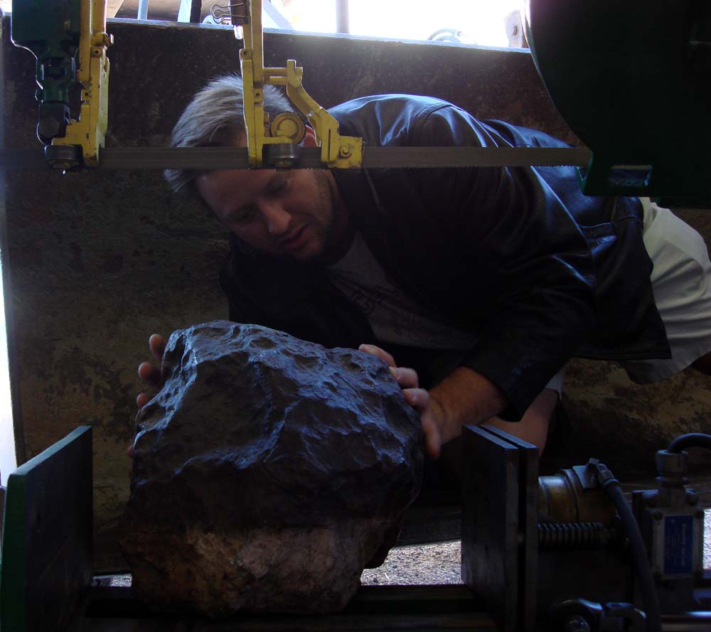 meteorite perfectly centered to push it into the saw. Once there, it was